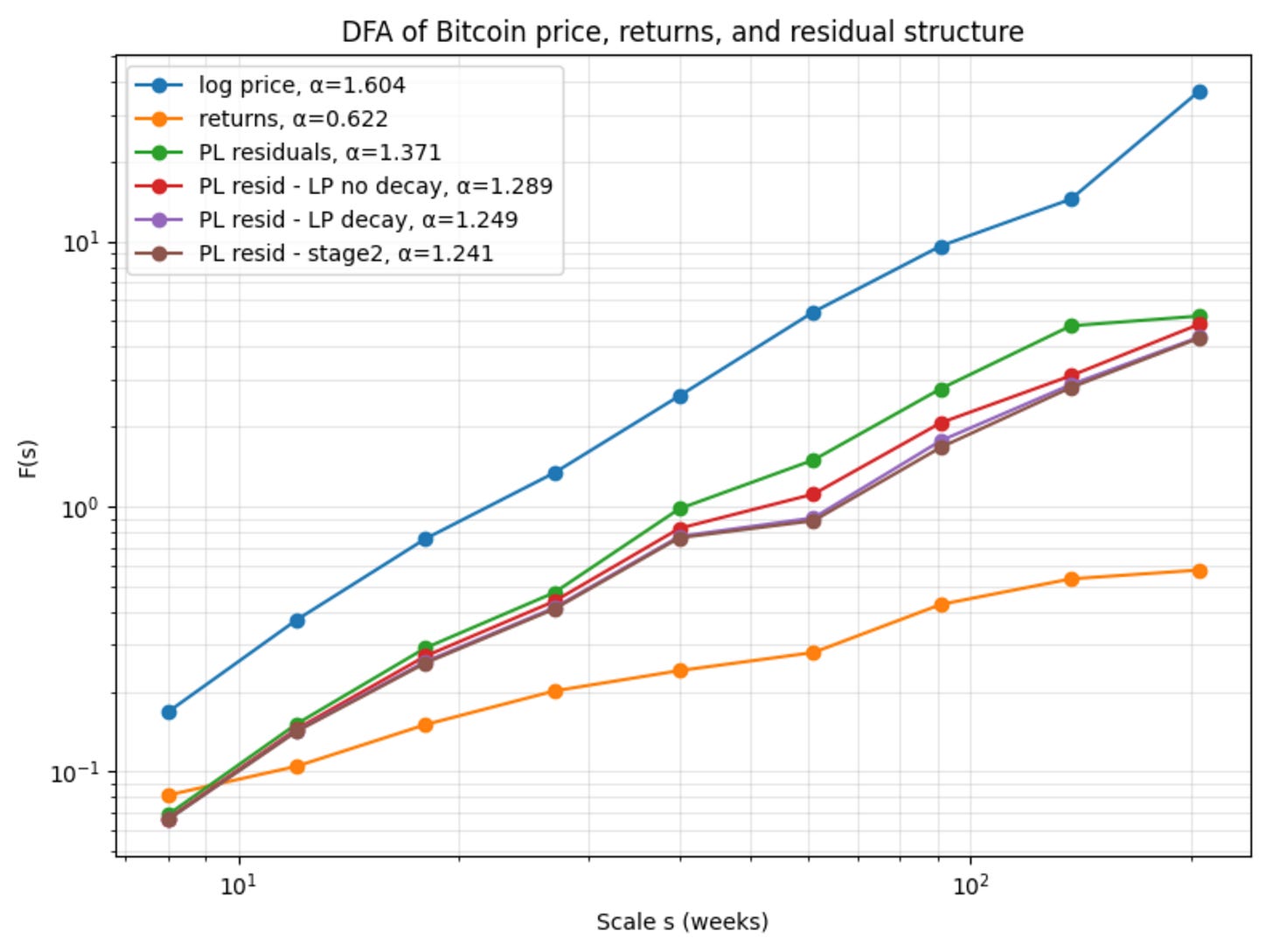 Bitcoin’s strong persistence is structural, reflecting its nature as a network. And the structure is layered. From my article applying the Hurst exponent method a year ago: